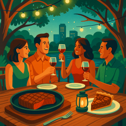 Let's say Peter has a great morning and decides to take his three friends to Brenner's on the Bayou Houston at 6 PM the same day.