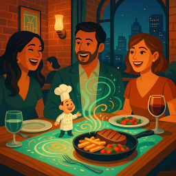 * Peter can now enjoy the dinner with his friends at Le Petit Chef Kansas City!