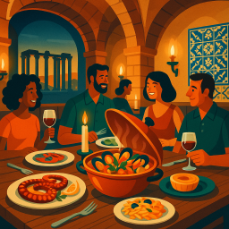 * Peter can now enjoy the dinner with his friends at O Templo Évora!