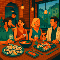 Let's say Peter has a great morning and decides to take his three friends to The Catch Rīga at 6 PM the same day.