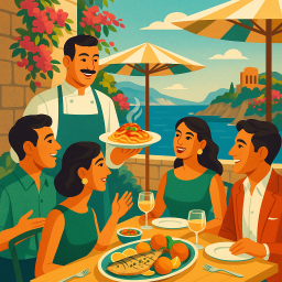 * Peter can now enjoy the dinner with his friends at Trattoria Da Nino Taormina!