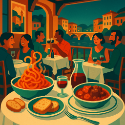 * Peter can now enjoy the dinner with his friends at Trattoria Sora Lella Roma!